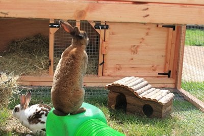 A hutch is not enough - a hutch should be a shelter, and never the main or sole accommodation for pet rabbits. The easiest way to provide a good environment for your bunnies is to attach a safe exercise run to the hutch so that they can exercise and shelter as they please.