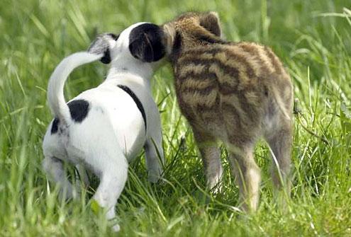19381931-661-495x335Although Manni the wild boar may not have had the best start in life, being found in his hour of need by the Dahlhaus family in Germany was definitely the best thing to ever happen to him. Shortly after being taken in and bought back to health, after being abandoned by his mother from an early age, the family introduced Manni to Candy – the family's friendly Jack Russell. The pair now spend hours in the fields together, playing their favourite game ‘hide and seek’!