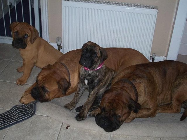 I have loved dogs all my life! I started off by owning Staffordshire bullterriers (a long time before they were popular!) and then moving on to bullmastiffs 15 years ago. I show my bullmastiffs as a hobby and I use to breed the odd litter but, as you have to dedicate a lot of time to a litter in order to rear them properly, I have not had the time recently because of business being so busy.