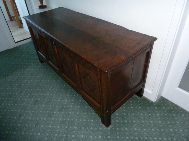 Jacobean Oak Coffer with diamond motif.