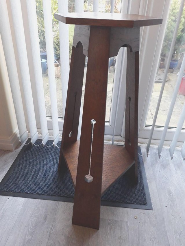 Elegant Tall Arts and Crafts solid oak display table.