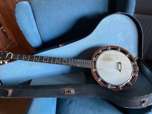 Banjo five string fifth string within neck to machine head