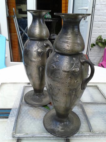 Pair of Pewter Flower Vases by KMD