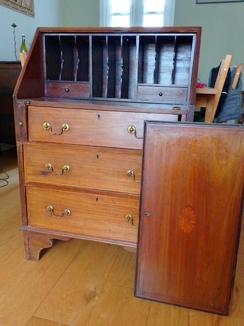 Antique wooden drop down desk bureau - needs TLC
