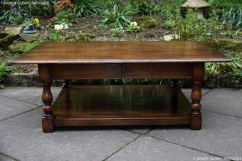 TITCHMARSH & GOODWIN STYLE OAK TWO DRAWER COFFEE TEA TABLE