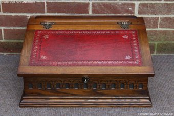 OLD CHARM LIGHT OAK WRITING DESK SLOPE CHEST BIBLE BOX TABLE