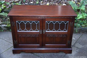 AN OLD CHARM TUDOR BROWN OAK TV CABINET CUPBOARD TABLE STAND