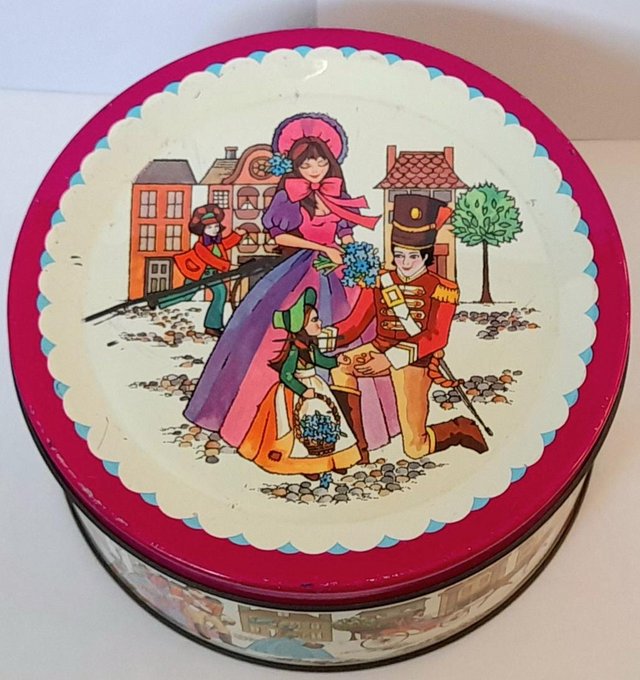 COLLECTABLE ROUND QUALITY STREET TIN - SOLDIER & FAMILY 14 c