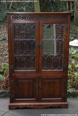 OLD CHARM WOOD BROS TUDOR OAK CHINA DISPLAY CABINET