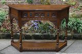 OLD CHARM TUDOR BROWN CARVED OAK PLANT STAND COFFEE TABLE