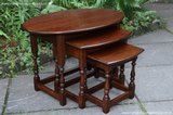 OLD CHARM NEST OF 3 OVAL TUDOR OAK COFFEE LAMP TEA TABLES