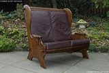 NIGEL RUPERT GRIFFITHS OAK LEATHER WING BACK SETTEE ARMCHAIR