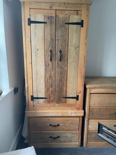 REDUCED Sturdy Reclaimed wooden bedroom furniture x 4 pieces