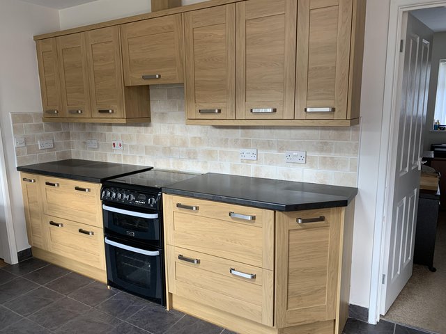 Light oak effect kitchen furniture