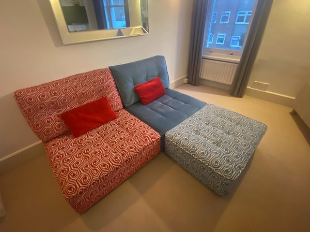 Darlings of Chelsea modular sofa, 2 units + footstool