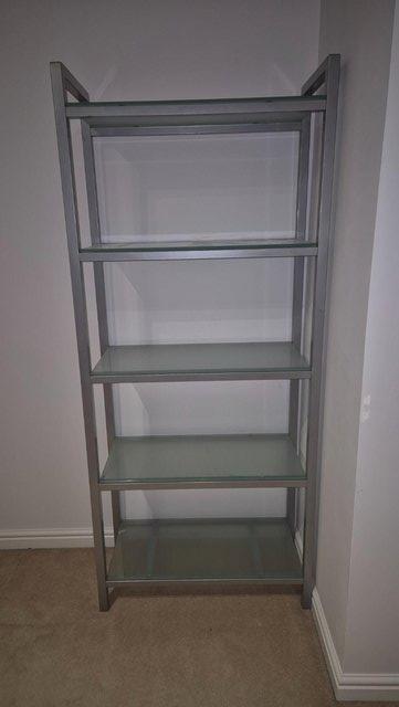 Metal framed glass shelf unit